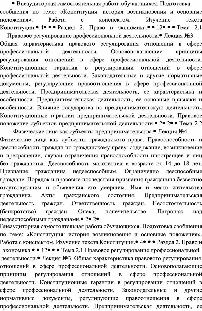 Внеаудиторная самостоятельная работа обучающихся Подготовка сообщений и рефератов по теме: «Экономические споры». Работа с нормативными актами. Работа с конспектом. |