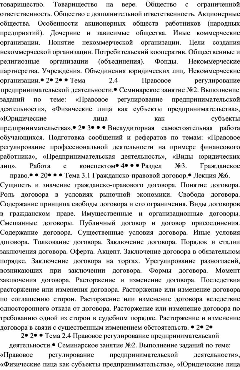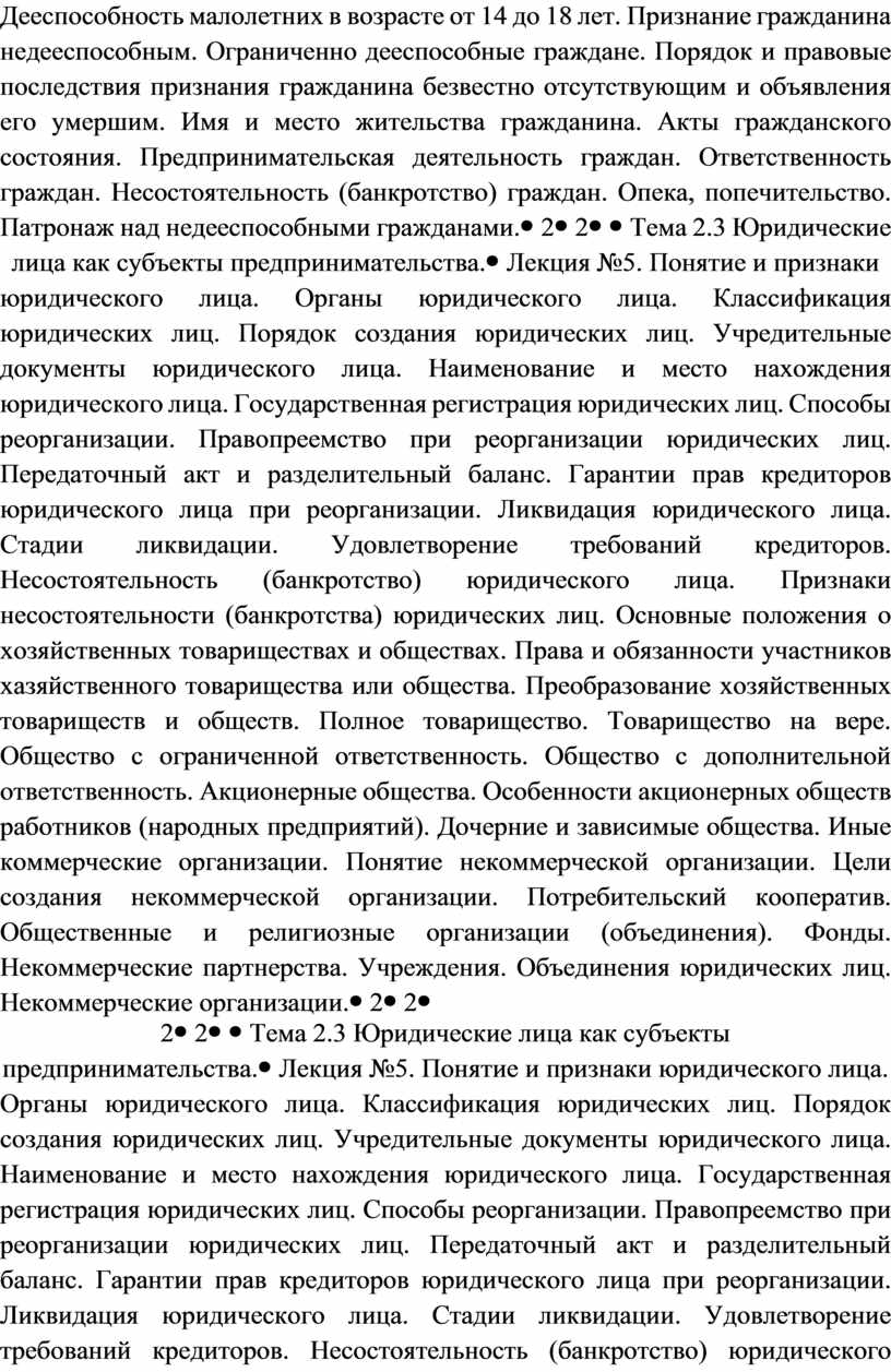 - правовое положение субъектов предпринимательской деятельности;