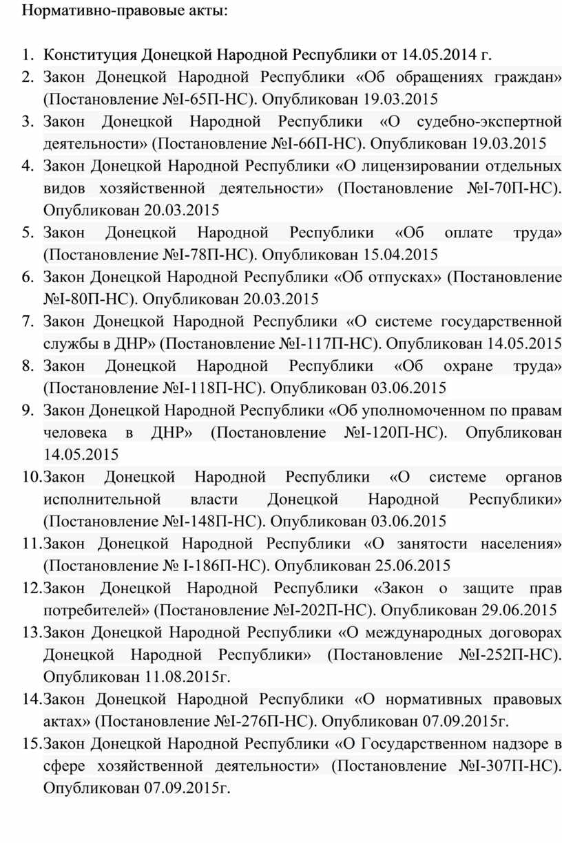 14. Закон Донецкой Народной Республики «О нормативных правовых актах» (Постановление №I-276П-НС). Опубликован 07.09.2015г.