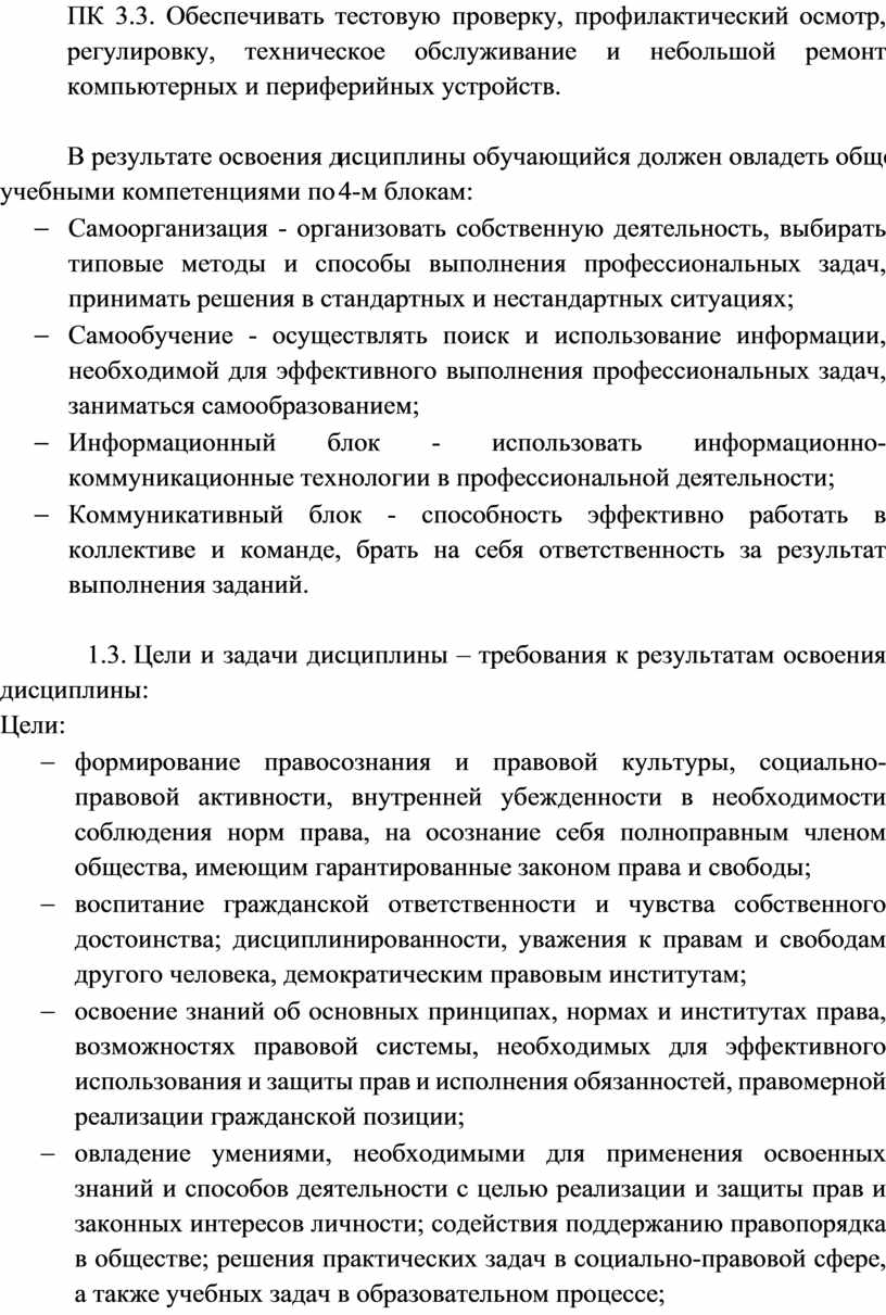 Учебная дисциплина ОП. 14 Правовое обеспечение профессиональной деятельности относится к профессиональному циклу общепрофессиональных дисциплин основной профессиональной образовательной программы и направлена на формирование общих (ОК) и профессиональных (ПК) компетенций.