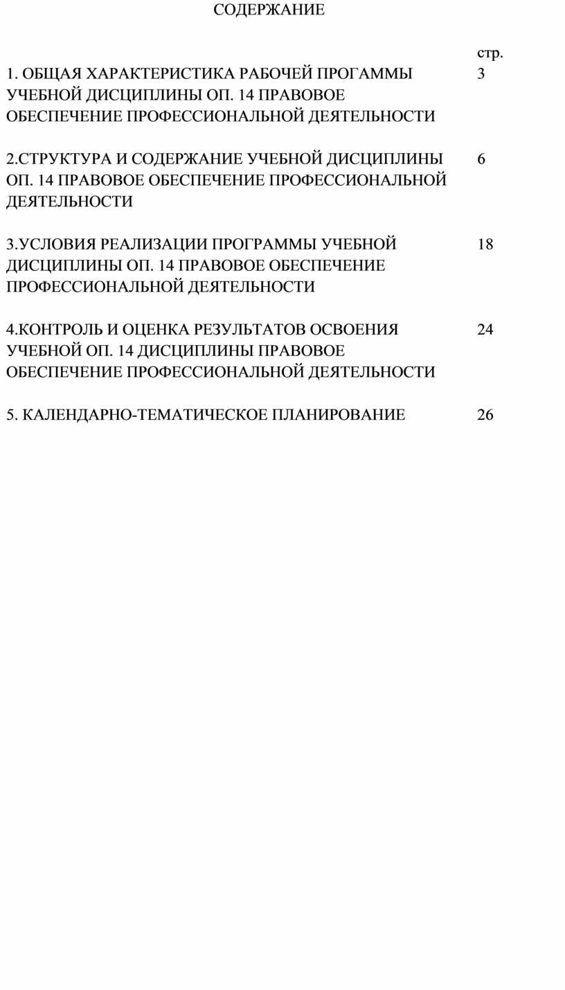 1. ОБЩАЯ ХАРАКТЕРИСТИКА РАБОЧЕЙ ПРОГАММЫ УЧЕБНОЙ ДИСЦИПЛИНЫ ОП. 14 ПРАВОВОЕ ОБЕСПЕЧЕНИЕ ПРОФЕССИОНАЛЬНОЙ ДЕЯТЕЛЬНОСТИ