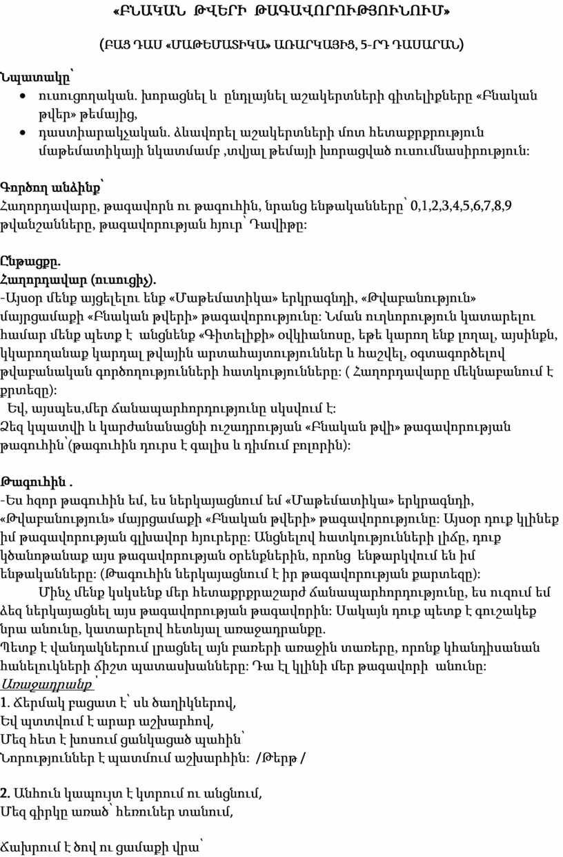 (ԲԱՑ ԴԱՍ «ՄԱԹԵՄԱՏԻԿԱ» ԱՌԱՐԿԱՅԻՑ, 5-ՐԴ ԴԱՍԱՐԱՆ)