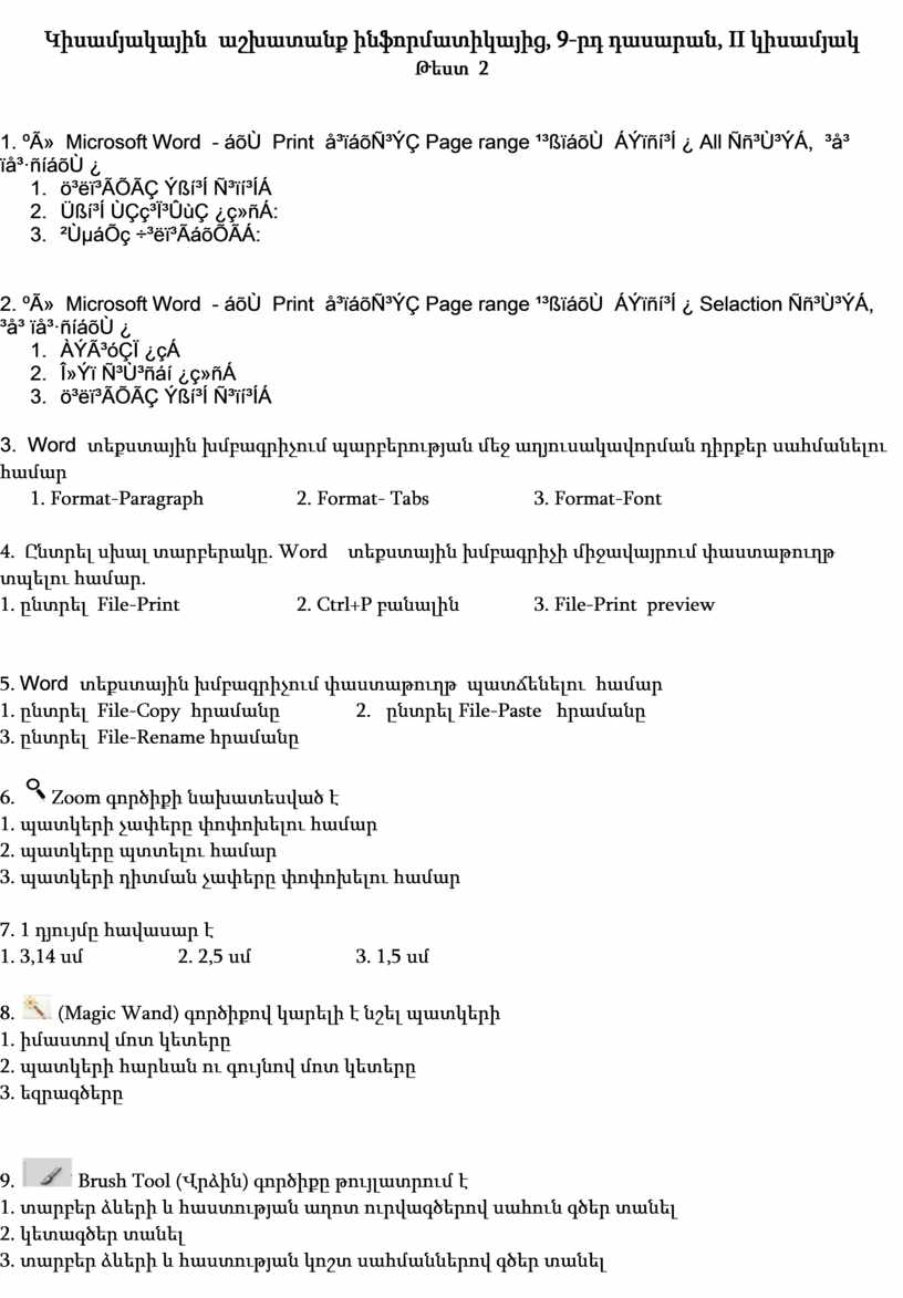 Կիսամյակային աշխատանք ինֆորմատիկայից, 9-րդ դասարան, II կիսամյակ