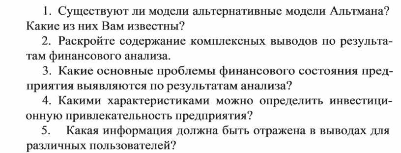 5. Раскройте сущность модели Альтмана и процедуры оценки финансового состояния на основе этой модели.