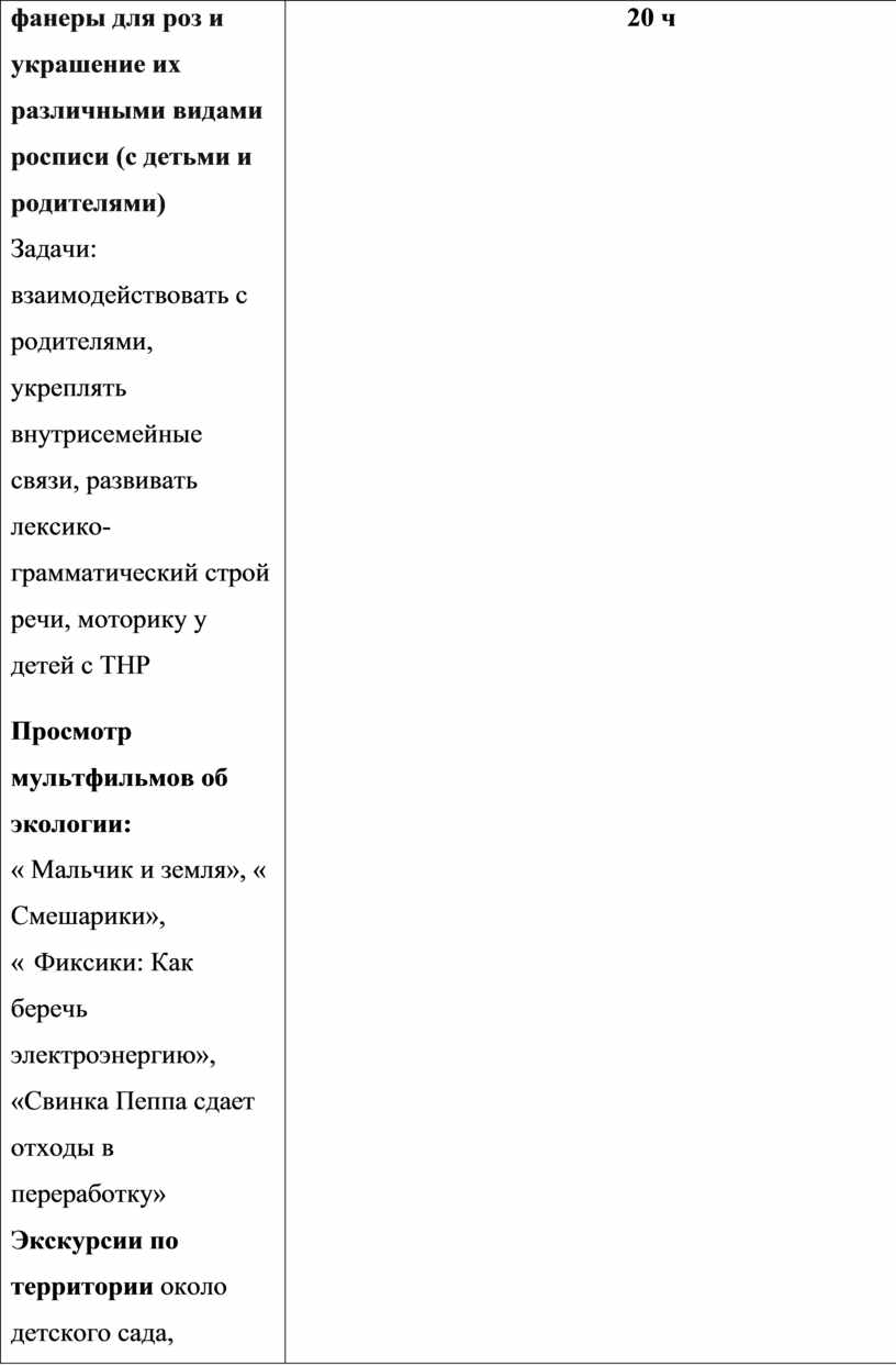 строй речи, моторику у детей с ТНР Просмотр мультфильмов об экологии: « Мальчик и земля», « Смешарики», « Фиксики: Как беречь электроэнергию», «Свинка Пеппа сдает отходы в переработку» Экскурсии по территории около