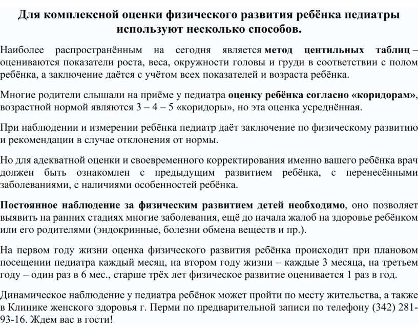 Для комплексной оценки физического развития ребёнка педиатры используют несколько способов.