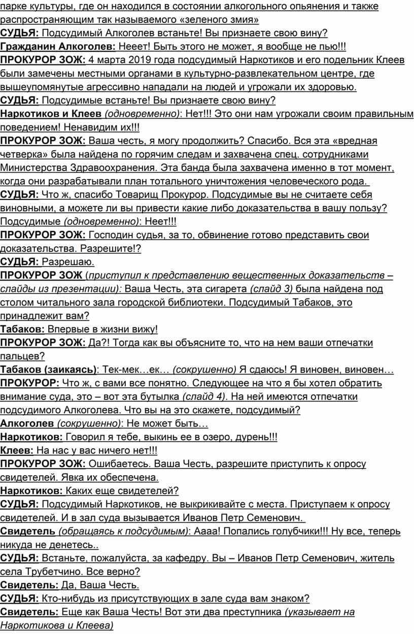 СУДЬЯ: Подсудимый Наркотиков, не выкрикивайте с места.
