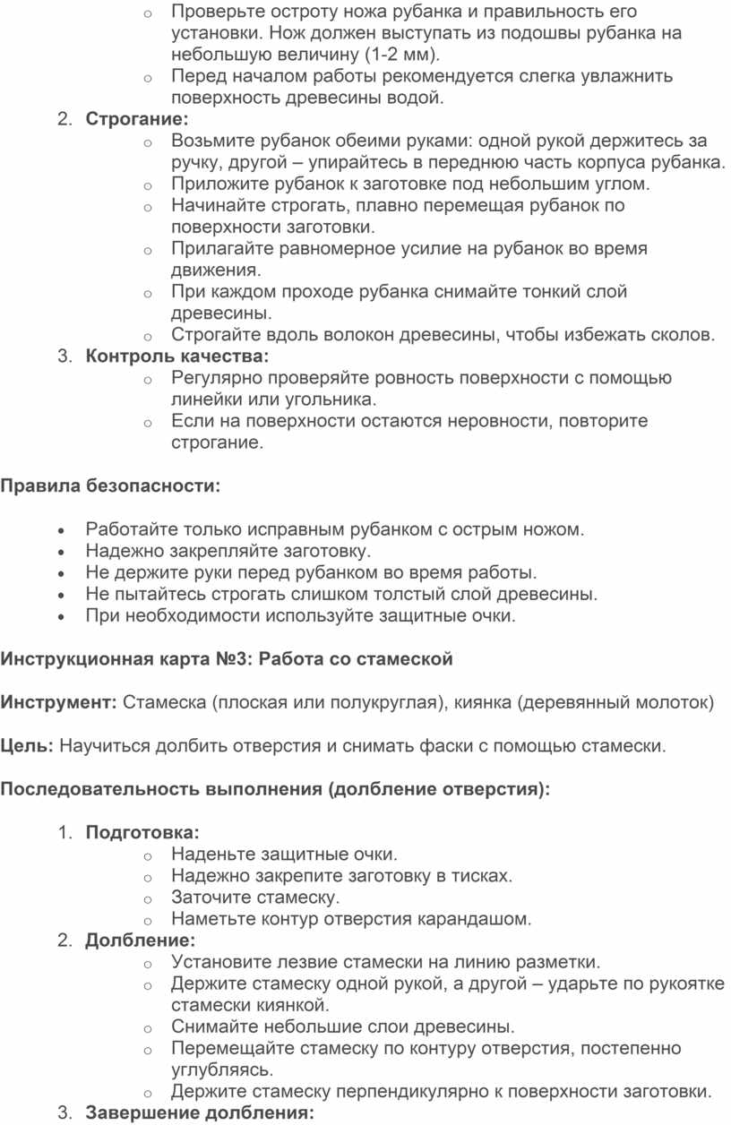 o Инструкционные карты с описанием приемов работы ручными инструментами.