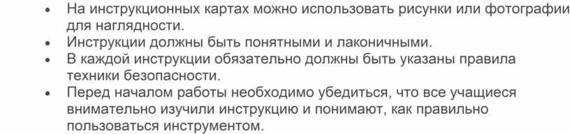 · На инструкционных картах можно использовать рисунки или фотографии для наглядности.