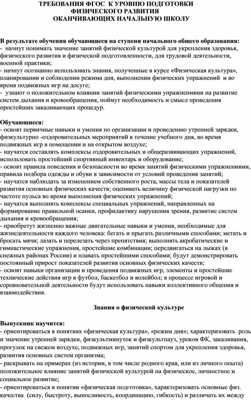 ТРЕБОВАНИЯ ФГОС К УРОВНЮ ПОДГОТОВКИ