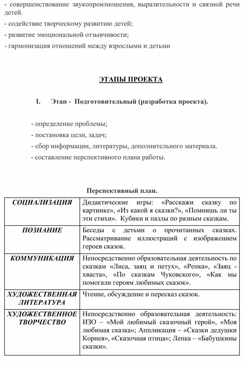 Непосредственно образовательная деятельность: ИЗО – «Мой любимый сказочный герой», «Моя любимая сказка»; Аппликация – «Сказки дедушки Корнея», «Сказочная птица»; Лепка – «Бабушкины сказки». |