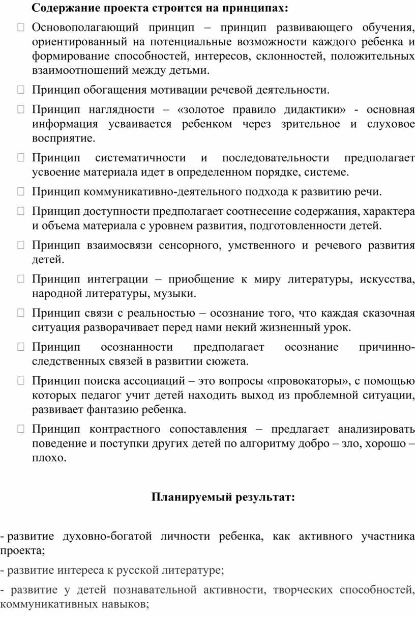 Принцип интеграции – приобщение к миру литературы, искусства, народной литературы, музыки.