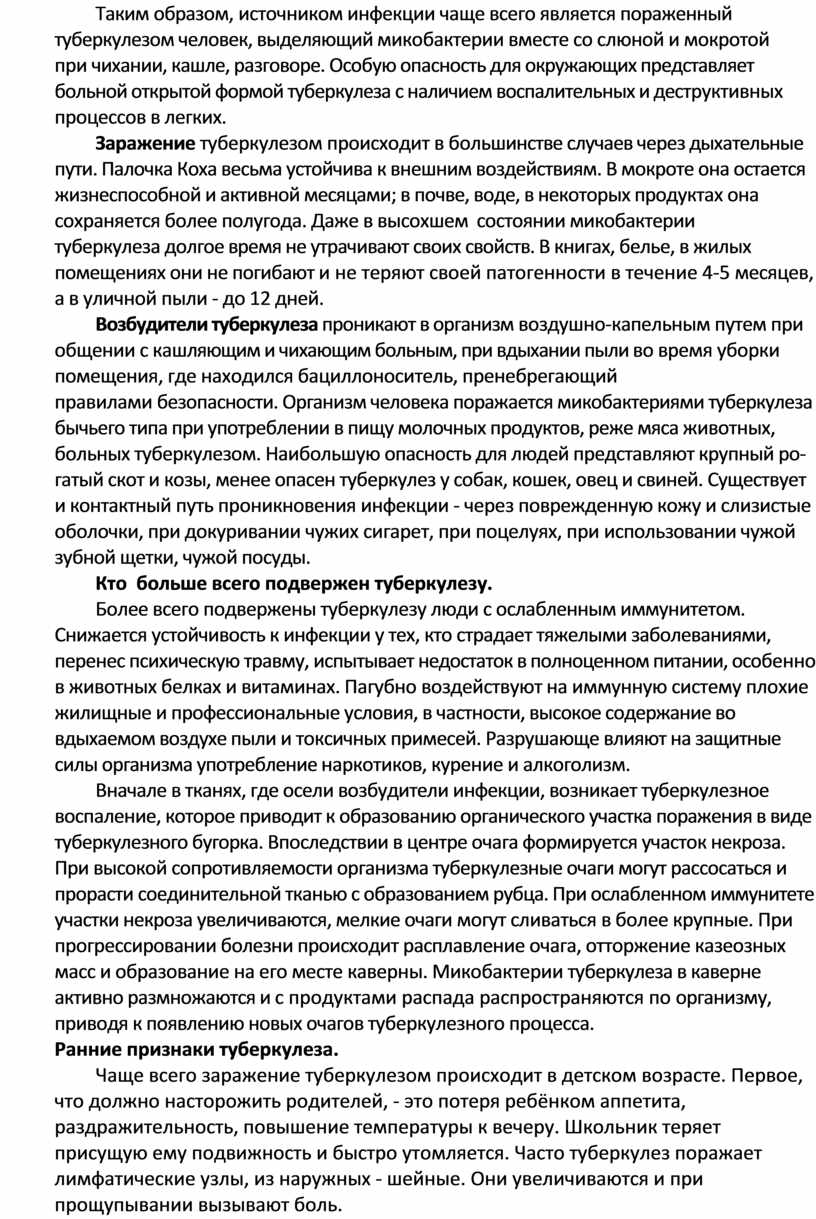 Задачи: познакомить учащихся с понятием «туберкулез» и путями его заражения;