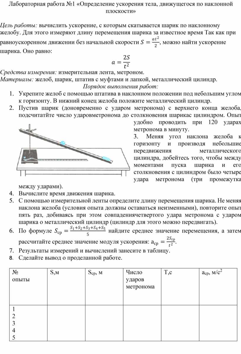 Лабораторная работа №1 «Определение ускорения тела, движущегося по наклонной плоскости»