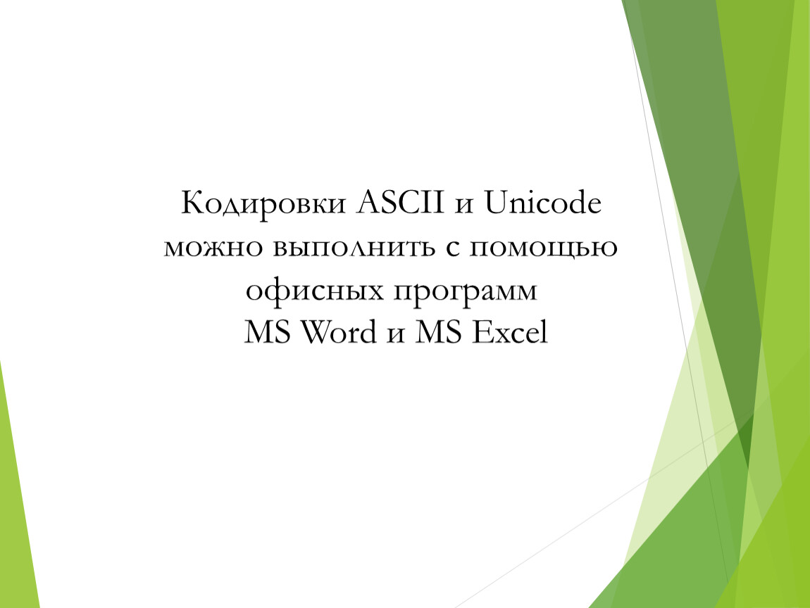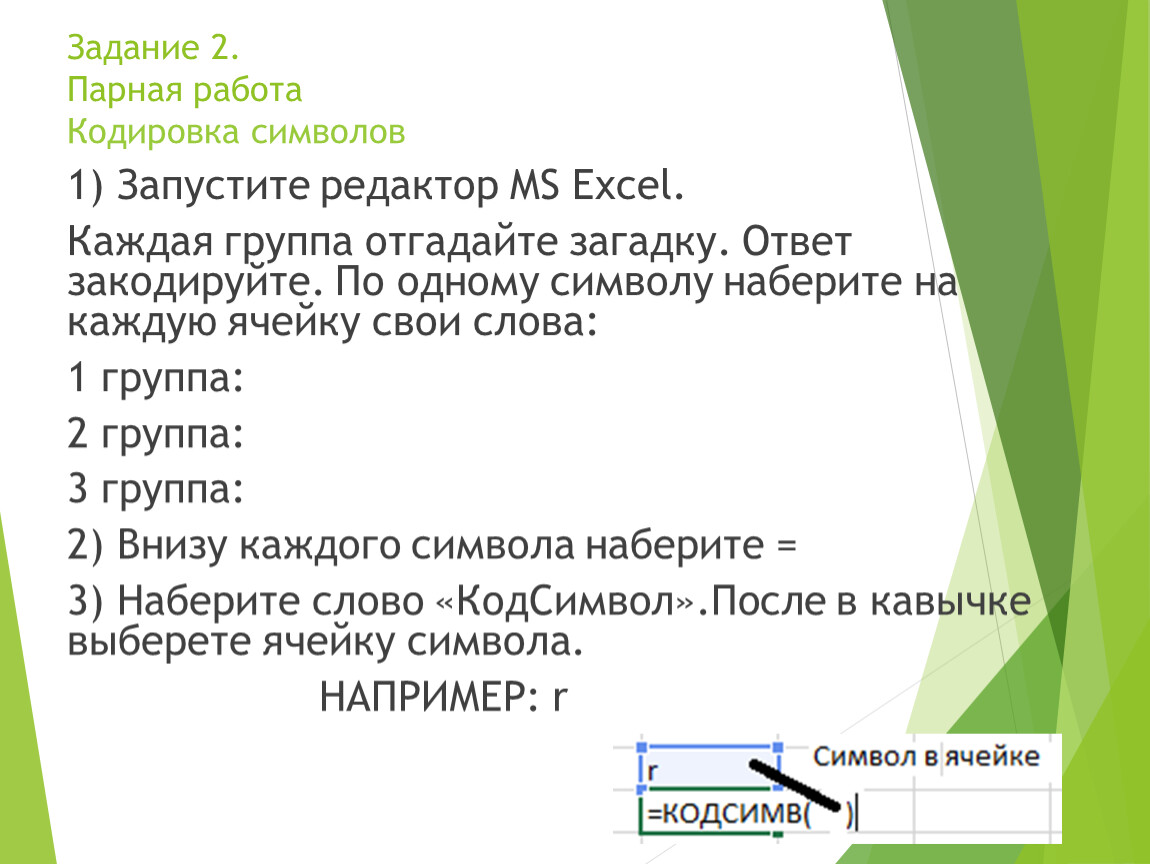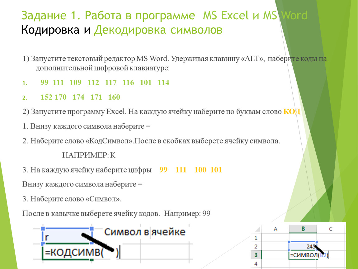 Задание 1. Работа в программе MS Excel и MS WordКодировка и Декодировка символов
