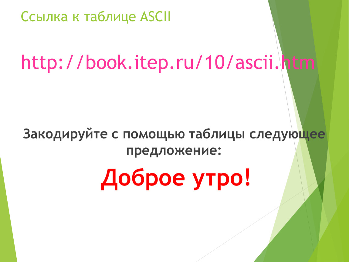 Ссылка к таблице ASCIIhttp://book.itep.ru/10/ascii.htm