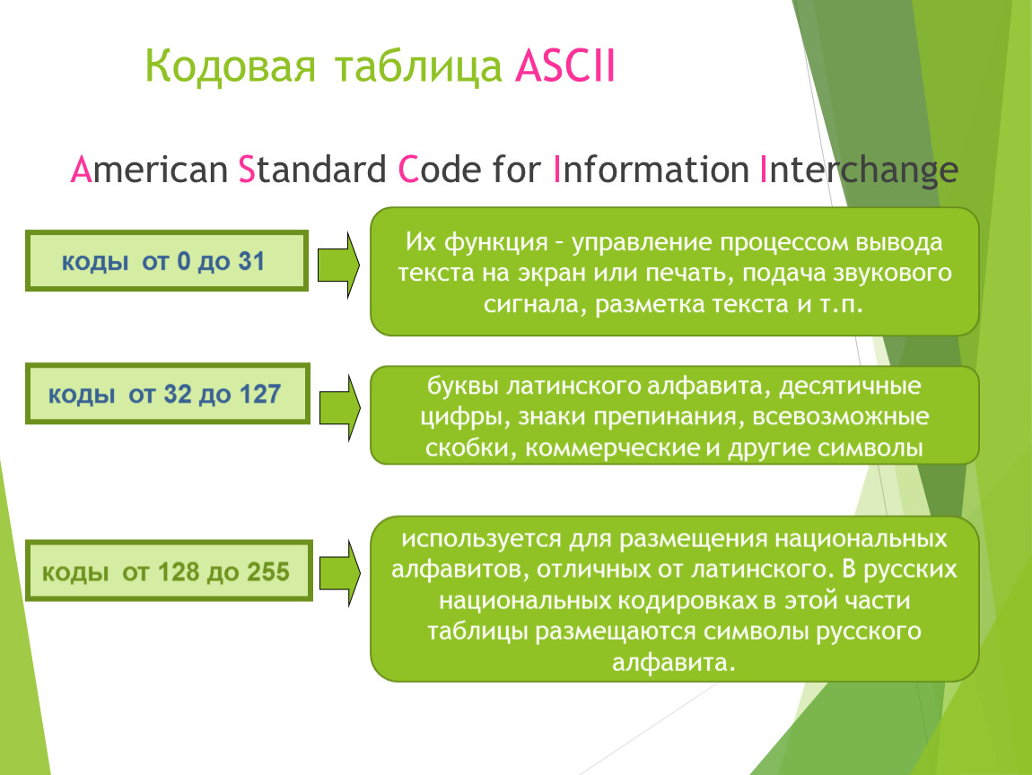 ASCII - англ. American Standard Code for Information Interchange - американский стандартный код для обмена информацией