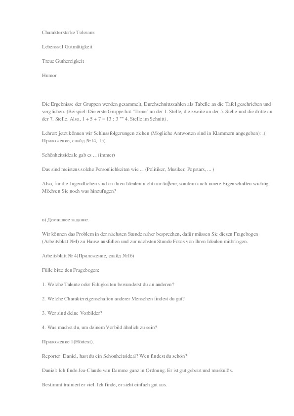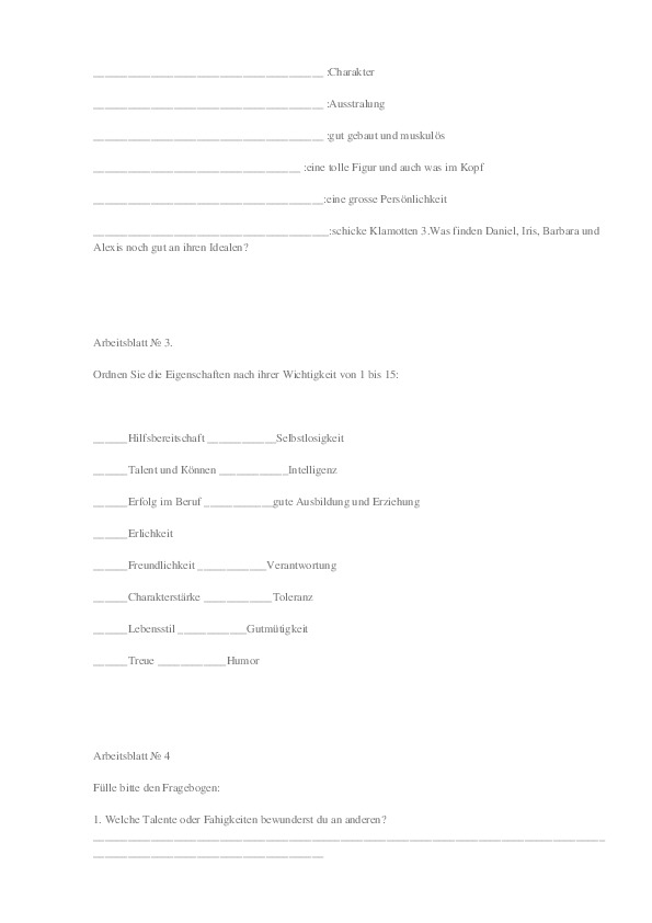 (Аrbeitsblatt №4) zu Hause ausfüllen und zur nächsten Stunde Fotos vоn Ihren Idealen mitbringen.