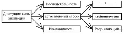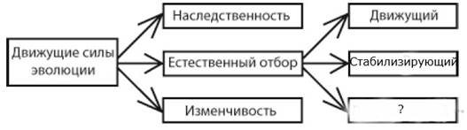 Рассмотрите предложенную схему классификации движущих сил эволюции. Запишите в ответе пропущенный термин, обозначенный на схеме вопросительным знаком.