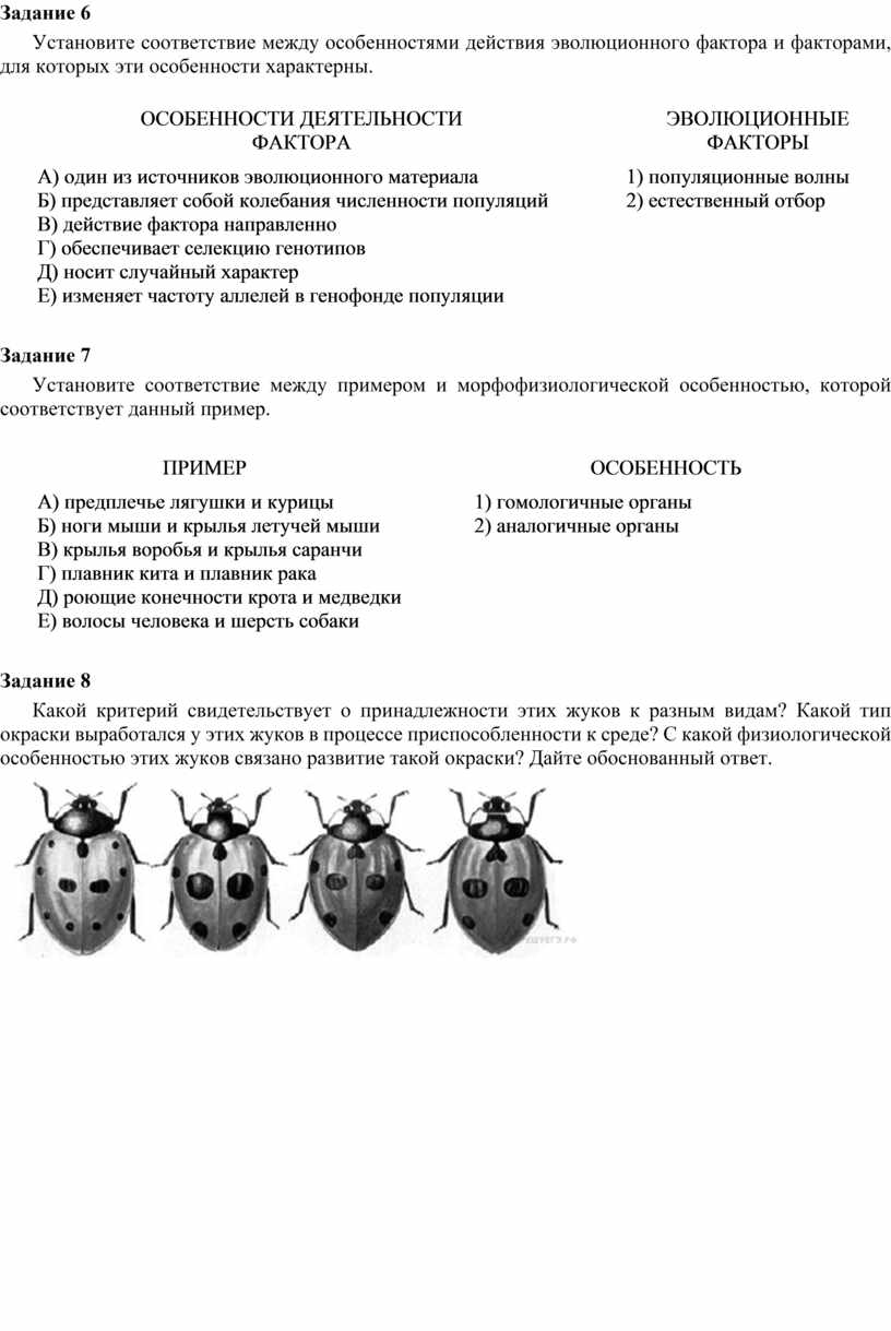 Какой критерий свидетельствует о принадлежности этих жуков к разным видам? Какой тип окраски выработался у этих жуков в процессе приспособленности к среде? С какой физиологической особенностью этих жуков связано развитие такой окраски? Дайте обоснованный ответ.