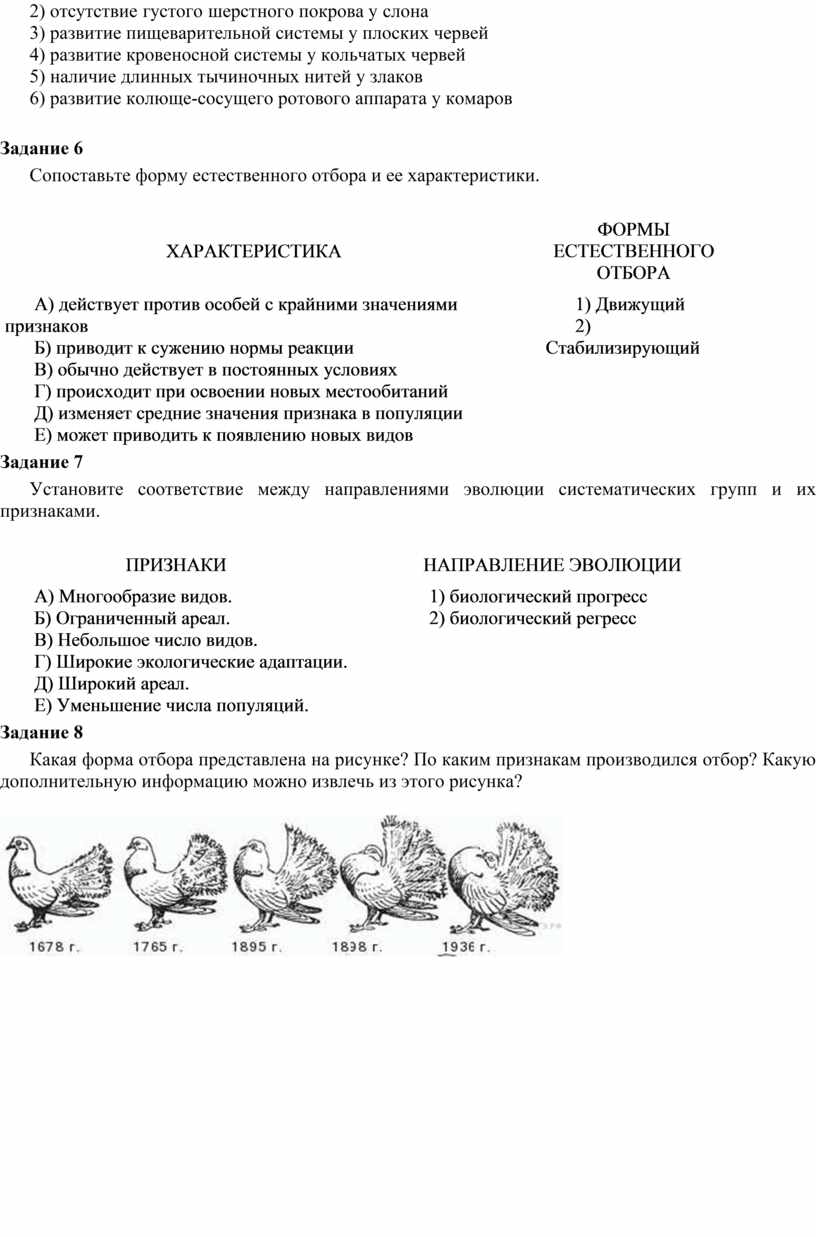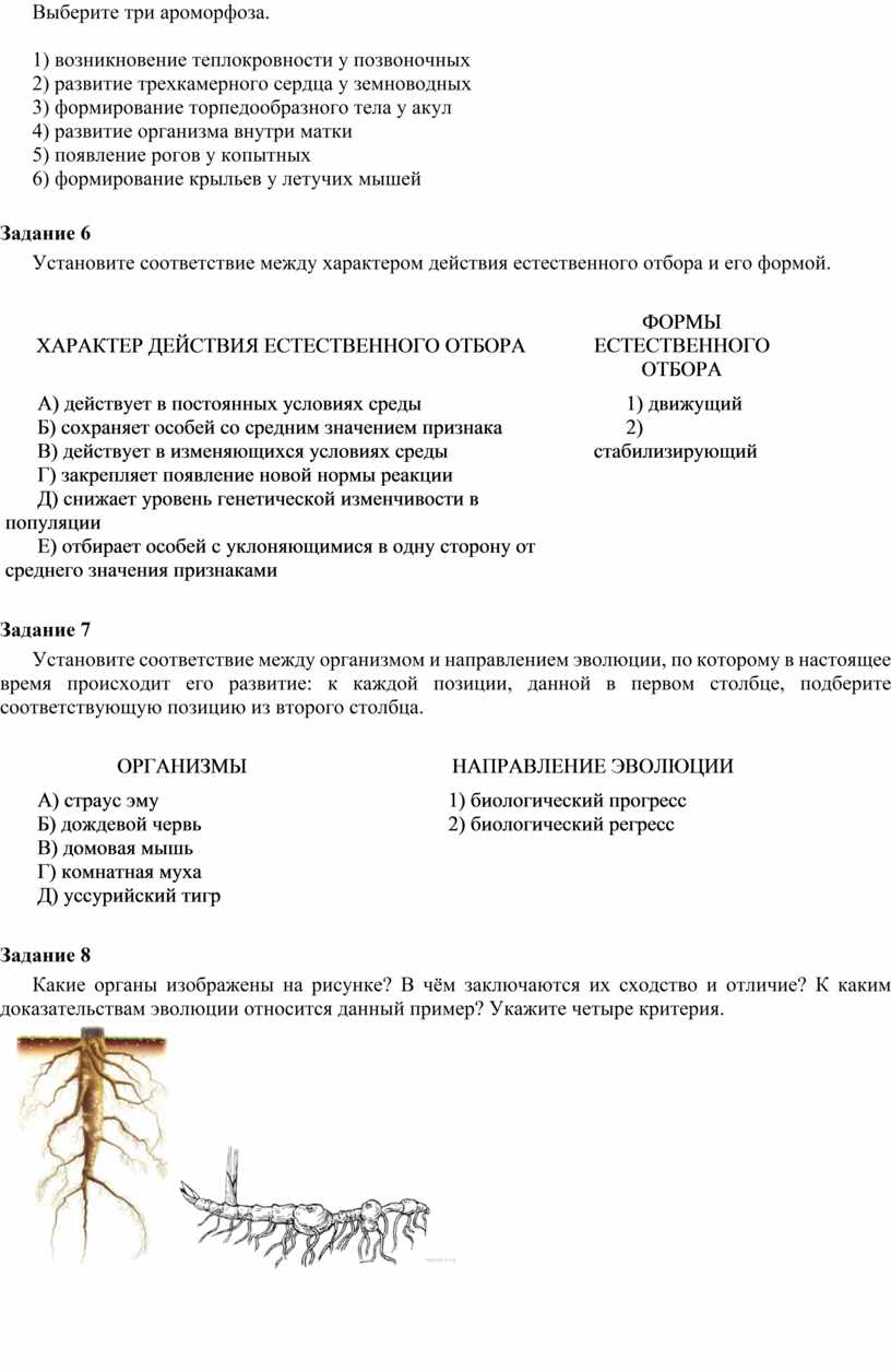 Установите соответствие между направлениями эволюции систематических групп и их признаками.