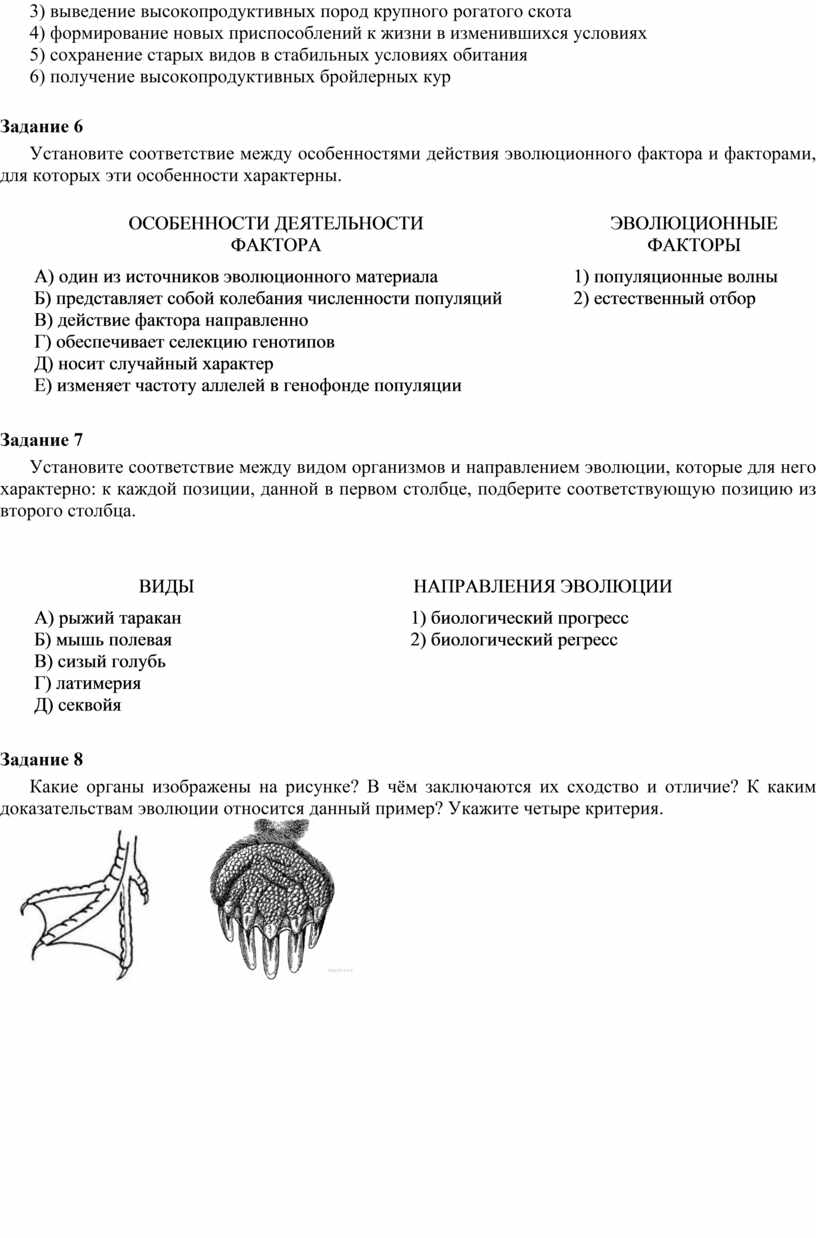 A) разнообразие пород голубей Б) сходство функций крыла бабочки и летучей мыши B) строение глаза осьминога и человека Г) зависимость формы клюва галапагосских вьюрков от способа добывания пищи Д) сходство в форме и функциях конечностей крота и медведки |