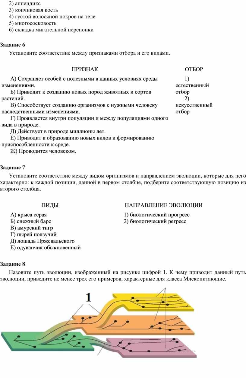 1) естественный отбор 2) искусственный отбор |