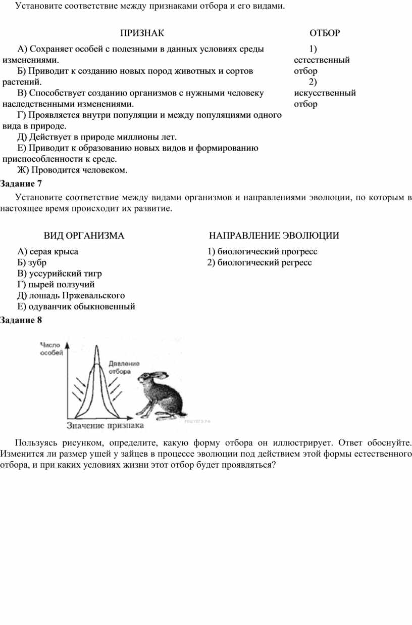 Пользуясь рисунком, определите, какую форму отбора он иллюстрирует. Ответ обоснуйте. Изменится ли размер ушей у зайцев в процессе эволюции под действием этой формы естественного отбора, и при каких условиях жизни этот отбор будет проявляться?