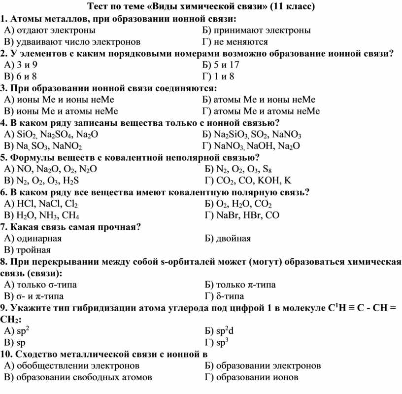 Тест по теме «Виды химической связи» (11 класс)