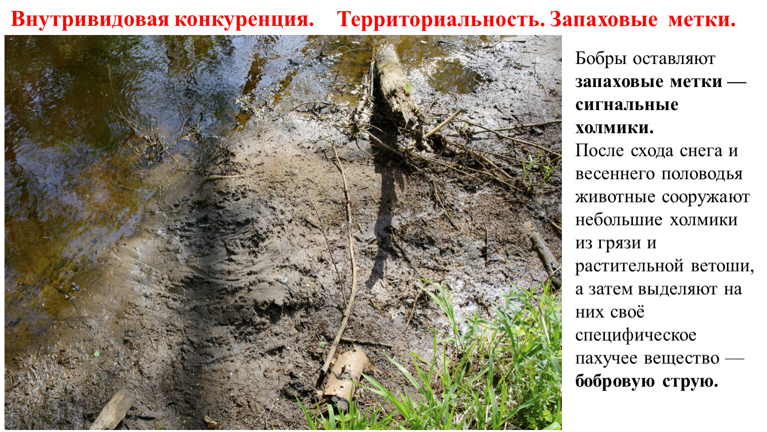 Бобры оставляют запаховые метки — сигнальные холмики.