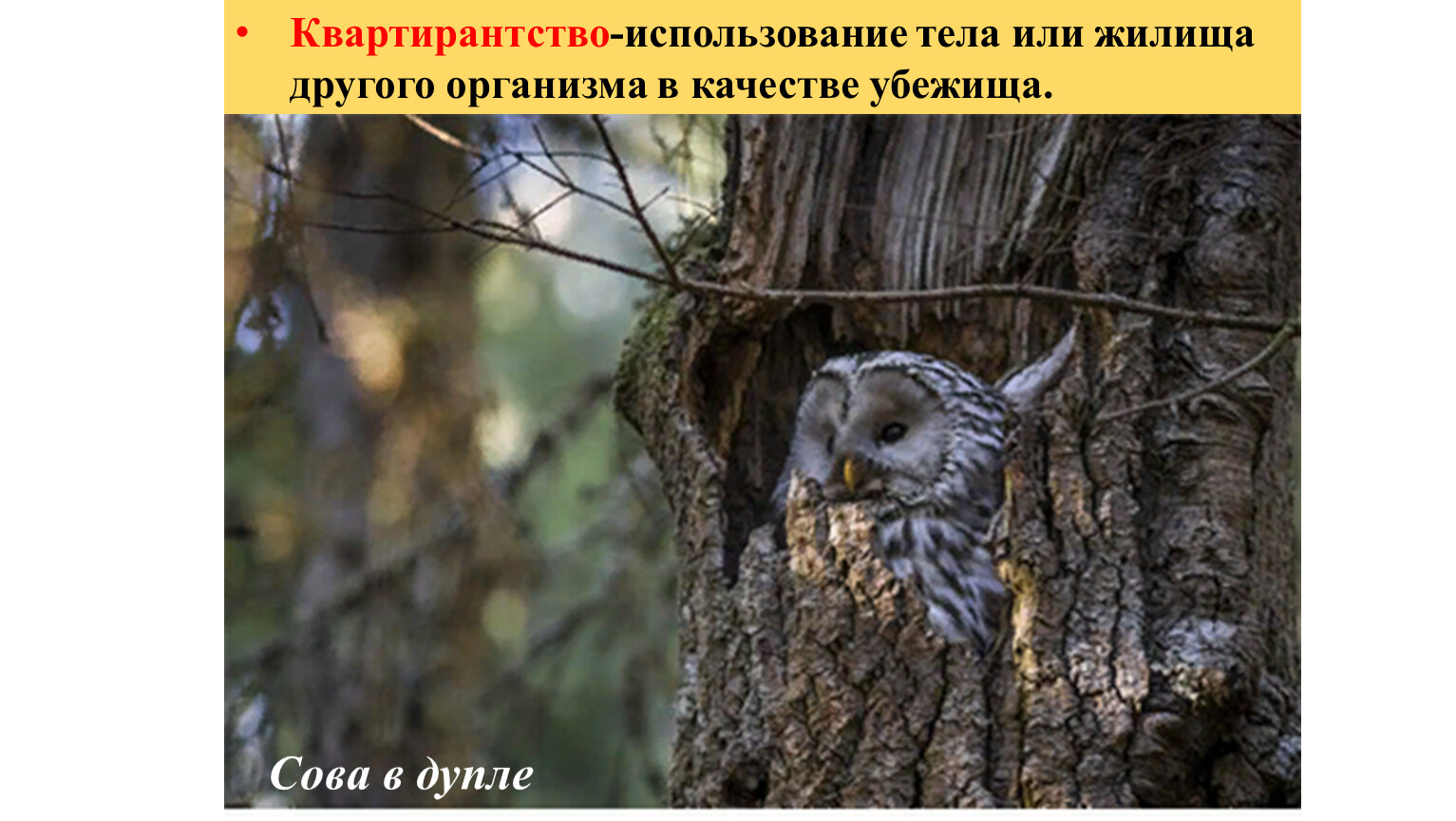 Квартирантство-использование тела или жилища другого организма в качестве убежища.