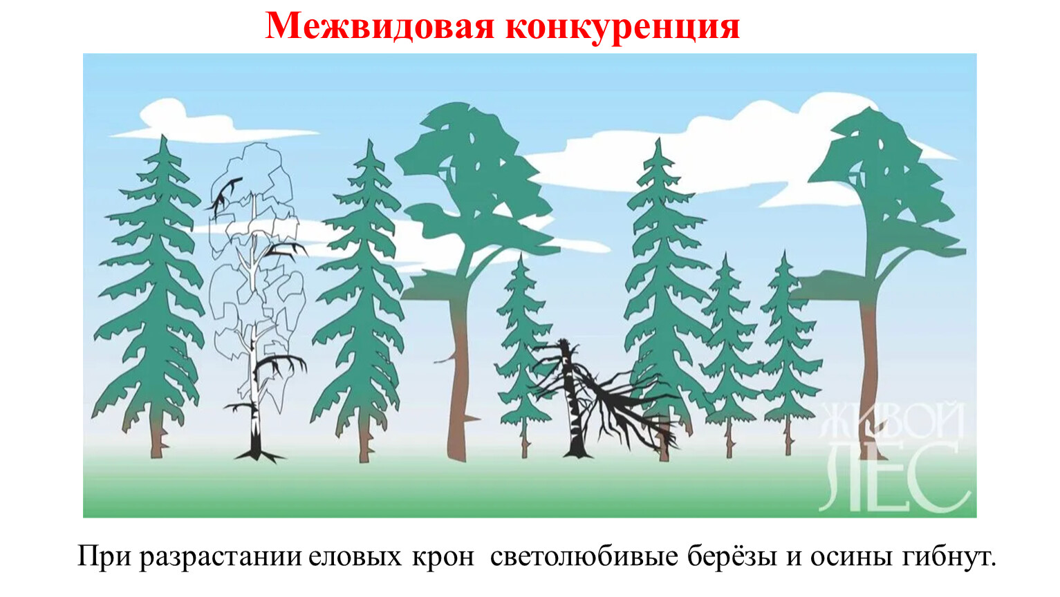 соперничество лесных растений за свет.