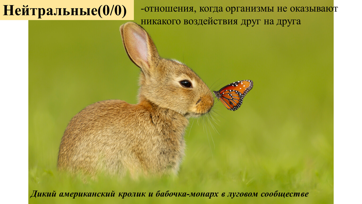 Дикий американский кролик и бабочка-монарх в луговом сообществе