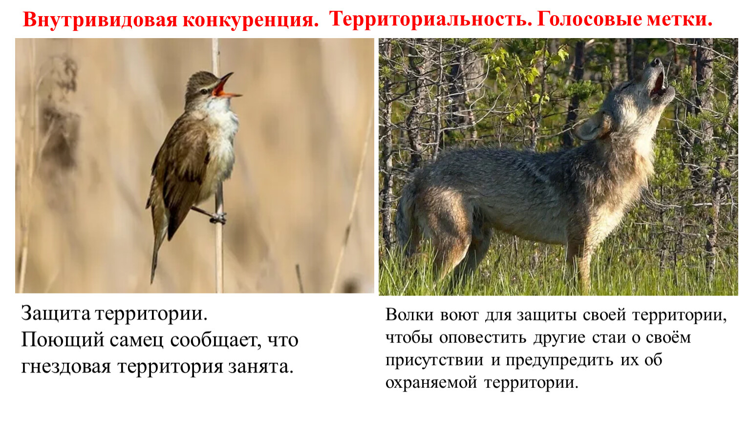 Волки воют для защиты своей территории, чтобы оповестить другие стаи о своём присутствии и предупредить их об охраняемой территории.