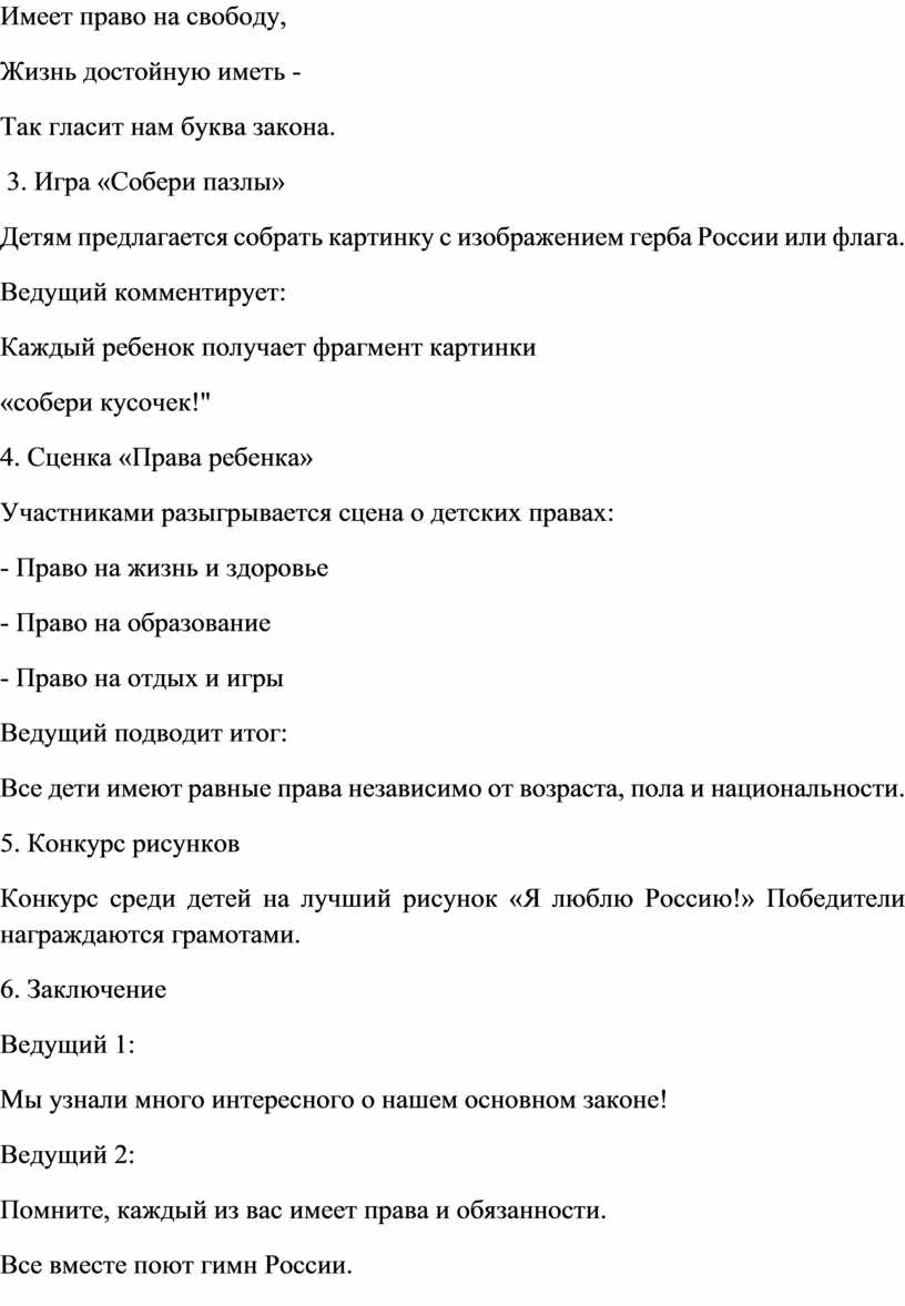 Сценарий праздника Дня Конституции для учащихся 1-го класса