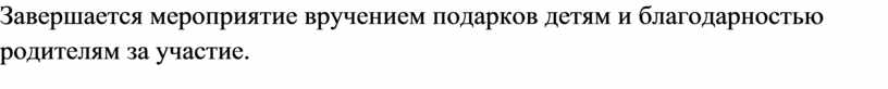 Завершается мероприятие вручением подарков детям и благодарностью родителям за участие.