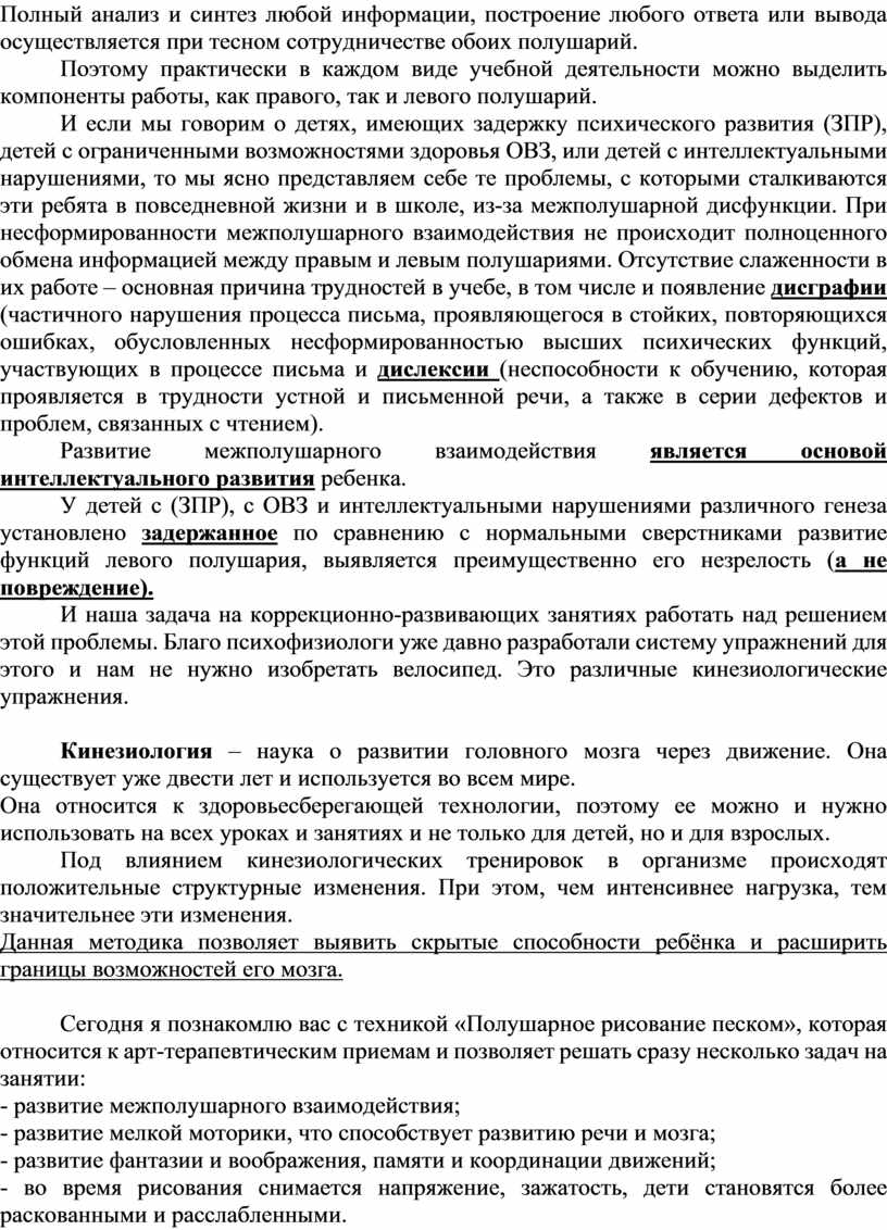 И если мы говорим о детях, имеющих задержку психического развития (ЗПР), детей с ограниченными возможностями здоровья ОВЗ, или детей с интеллектуальными нарушениями, то мы ясно представляем себе те проблемы, с которыми сталкиваются эти ребята в повседневной жизни и в школе, из-за межполушарной дисфункции. При несформированности межполушарного взаимодействия не происходит полноценного обмена информацией между правым и левым полушариями. Отсутствие слаженности в их работе – основная причина трудностей в учебе, в том числе и появление дисграфии (частичного нарушения процесса письма, проявляющегося в стойких, повторяющихся ошибках, обусловленных несформированностью высших психических функций, участвующих в процессе письма и дислексии (неспособности к обучению, которая проявляется в трудности устной и письменной речи, а также в серии дефектов и проблем, связанных с чтением).