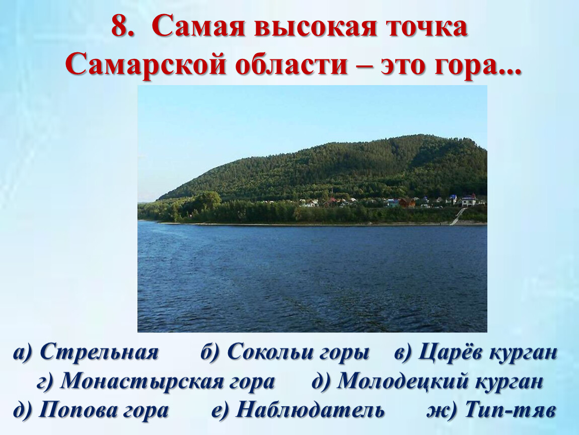 а) Стрельная б) Сокольи горы в) Царёв курган