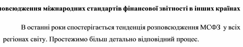 В останні роки спостерігається тенденція розповсюдження МСФЗ у всіх регіонах світу. Простежимо більш детально відповідний процес.