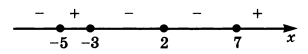 неравенство Отметим на координатной прямой значения х, обращающие в нуль числитель или знаменатель дроби, и определим знак дроби в каждом из образовавшихся интервалов (рис.3). Неравенству удовлетворяют все значения х, при которых эта дробь принимает положительные значения, а также числа 2 и -3, обращающие в нуль ее числитель. Значит, множество решений неравенства