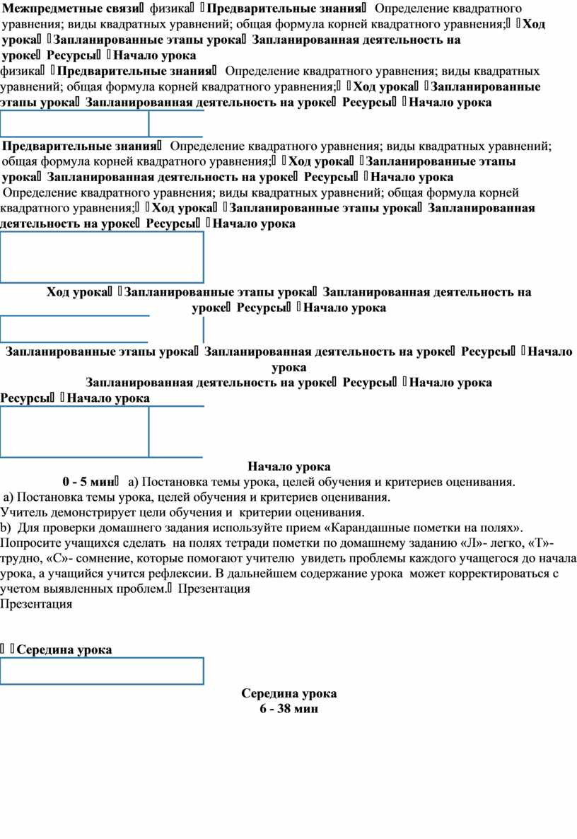 Запланированные этапы урока |