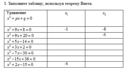 8.2.2.4 применять теорему Виета; |