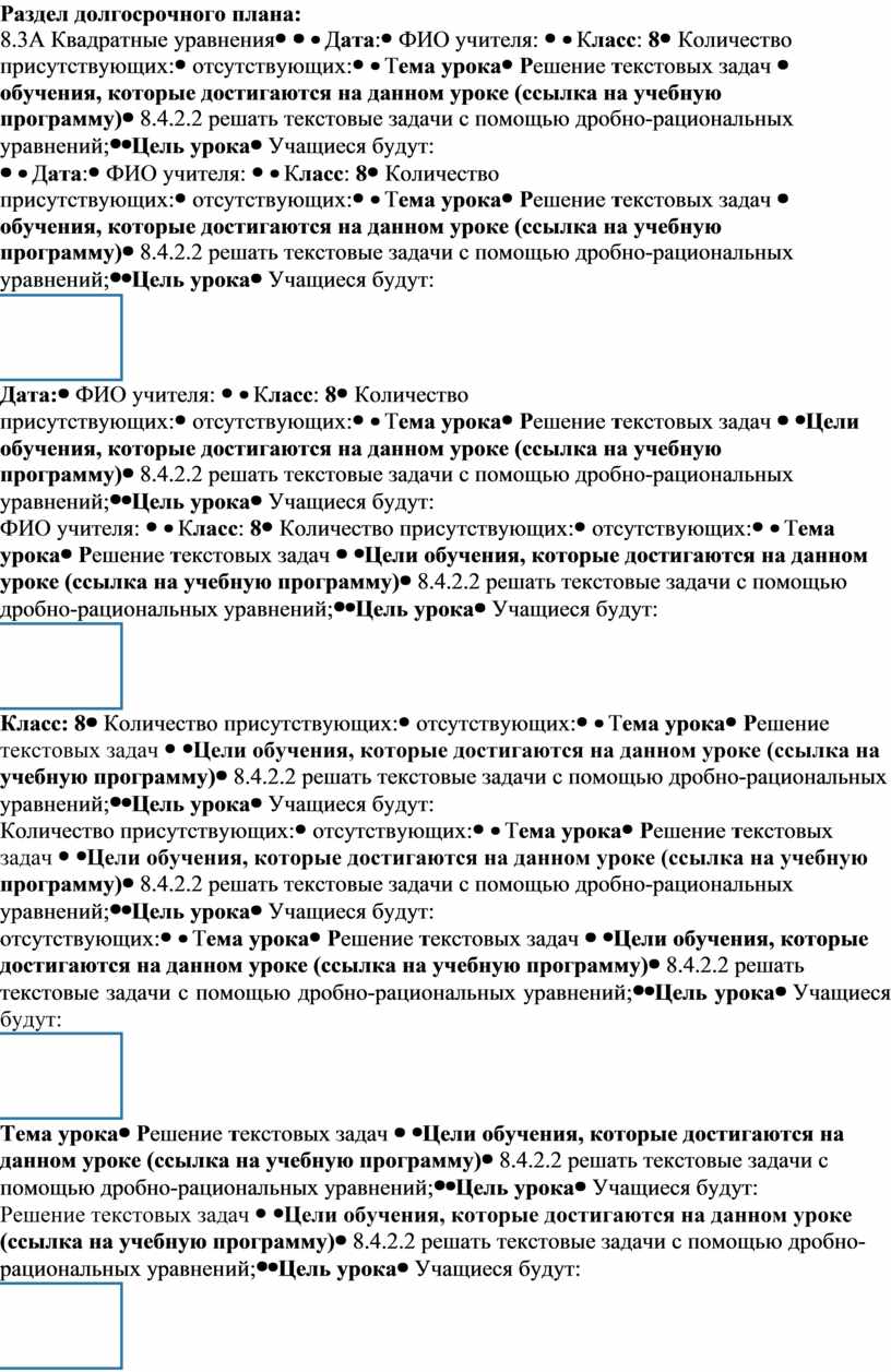 8.4.2.2 решать текстовые задачи с помощью дробно-рациональных уравнений; |