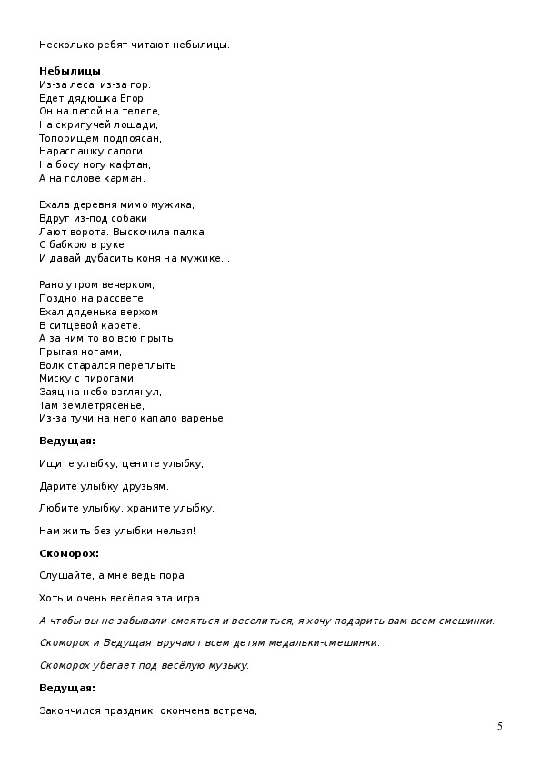 Ведущий: А не послушать ли нам в лицах небылицы?