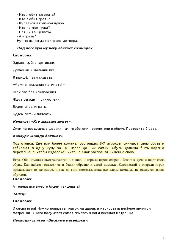 обувь. Как найдет, одевает ее и бежит обратно к своей команде. Следующий в очереди игрок