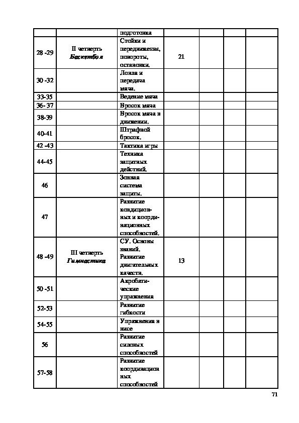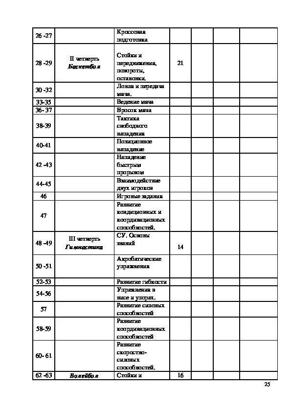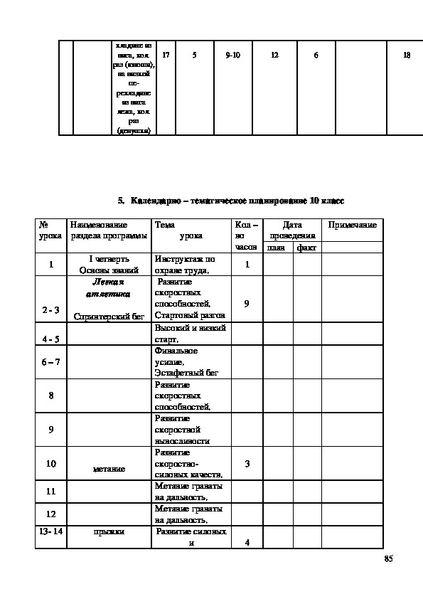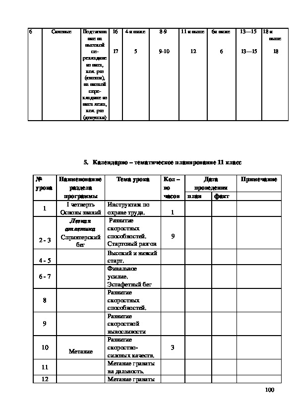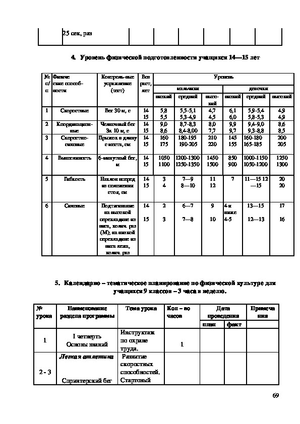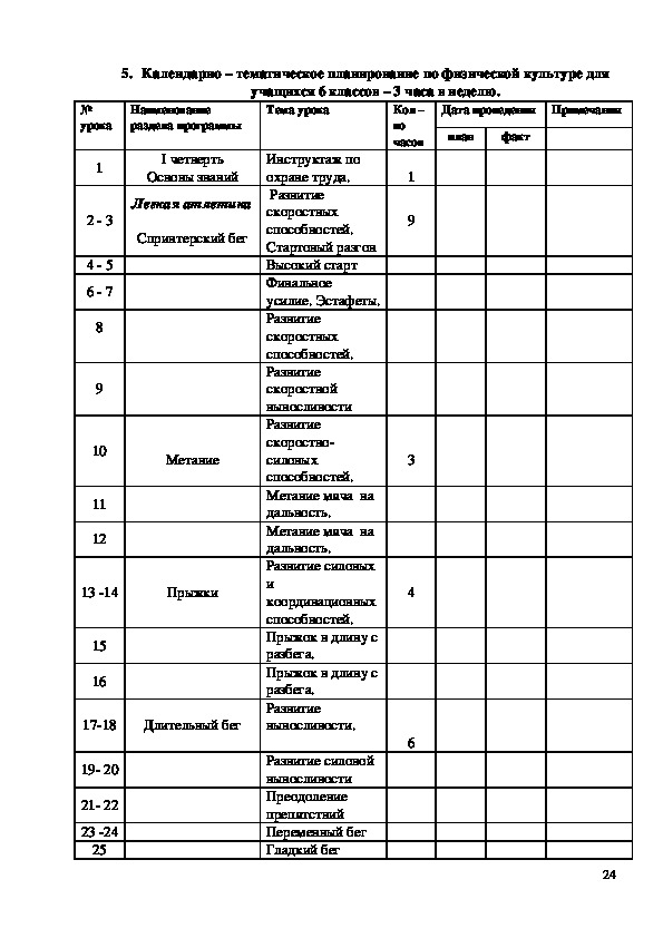 235. Календарно – тематическое планирование по физической культуре для