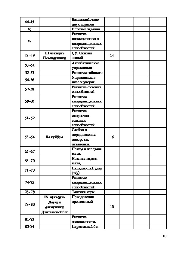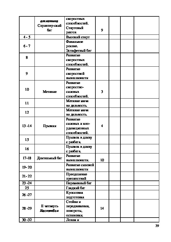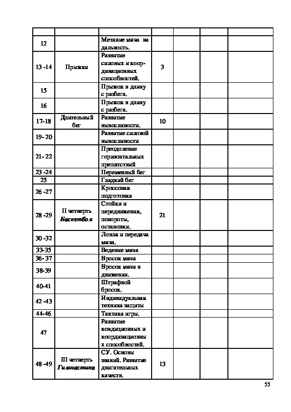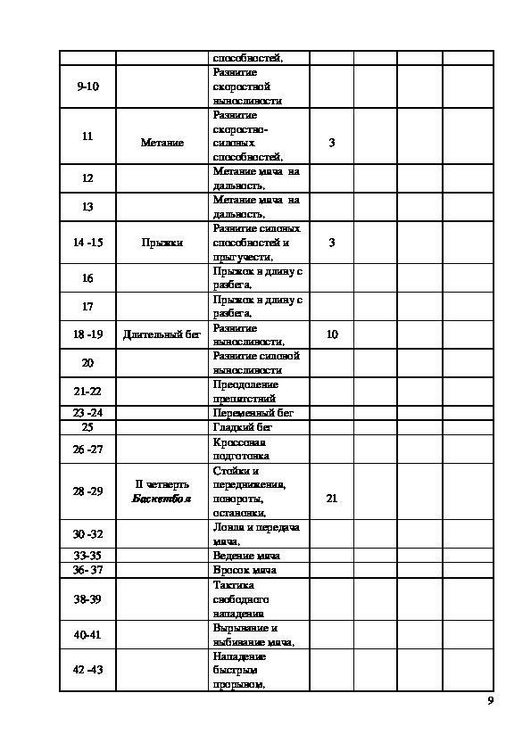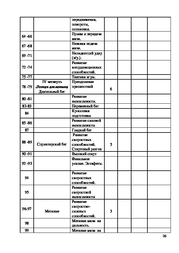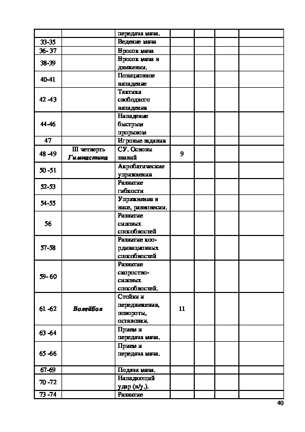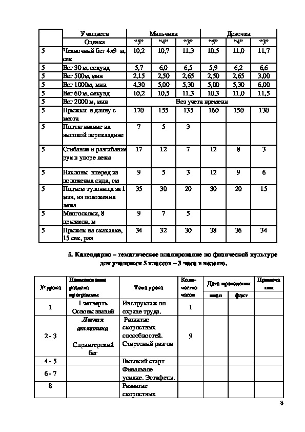 235. Календарно – тематическое планирование по физической культуре для