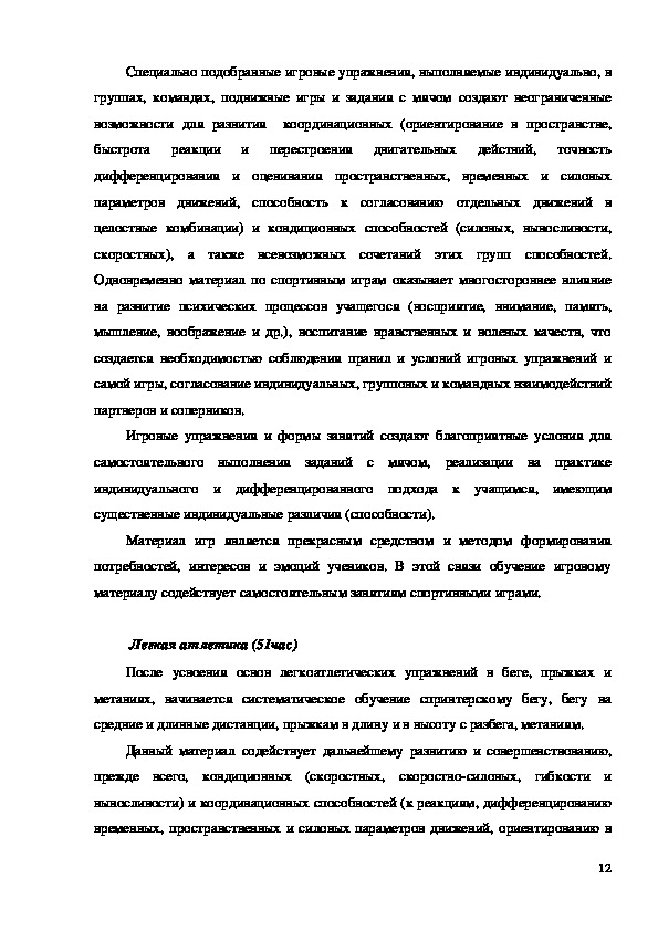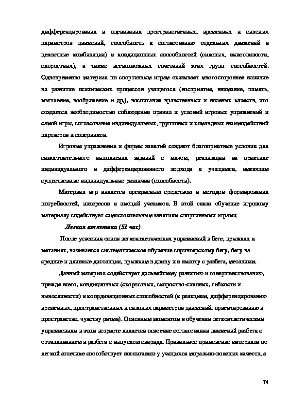 пространстве, чувству ритма). Основным моментом в обучении легкоатлетическим