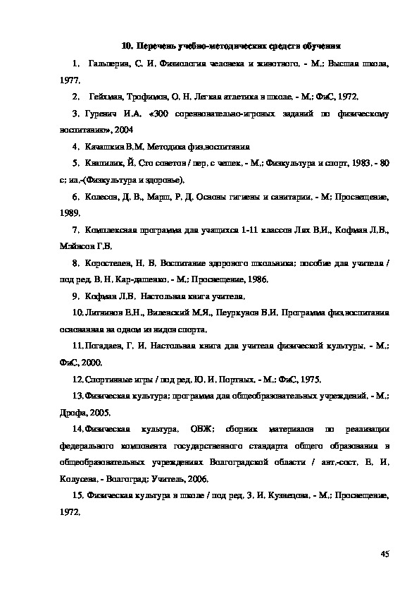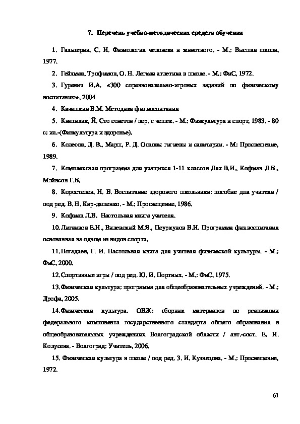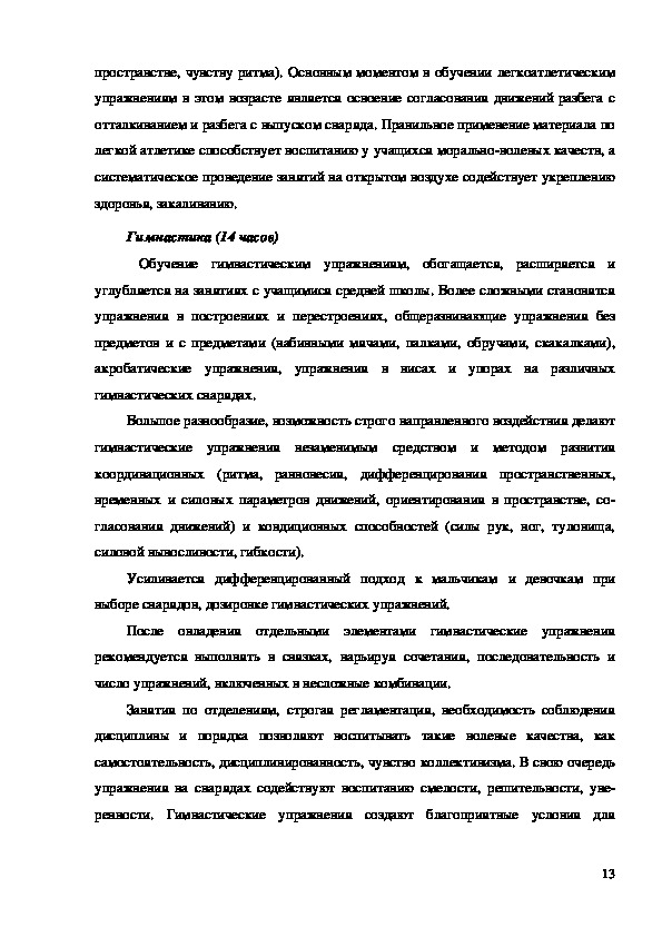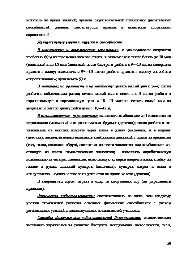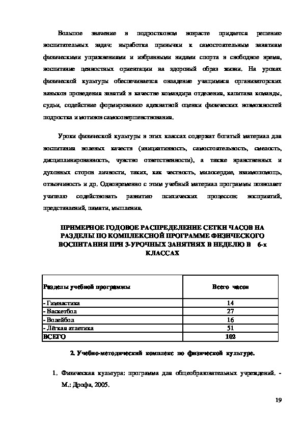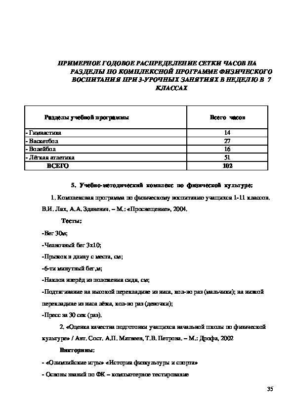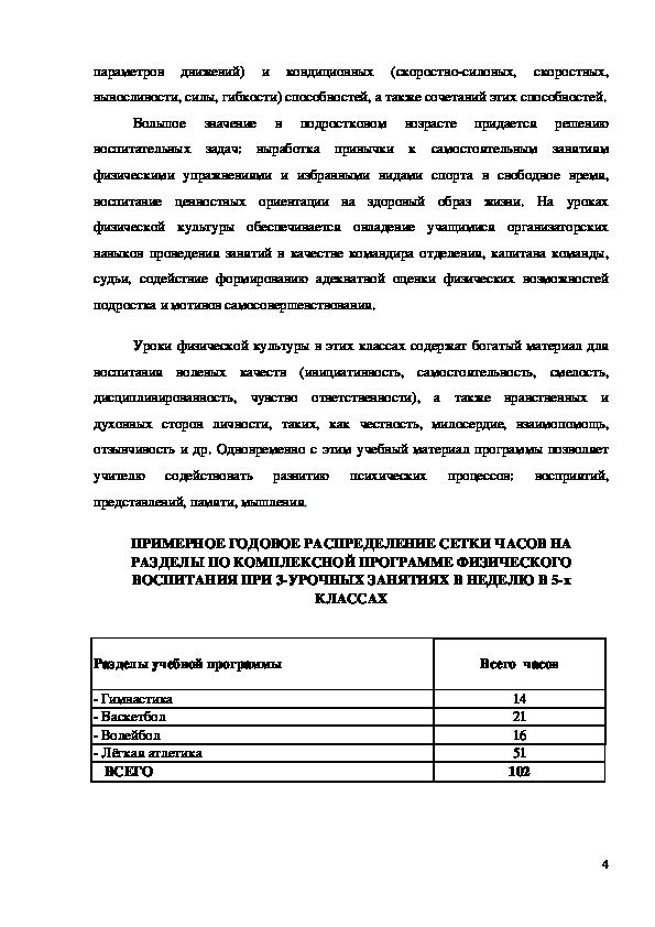 РАЗДЕЛЫ ПО КОМПЛЕКСНОЙ ПРОГРАММЕ ФИЗИЧЕСКОГО