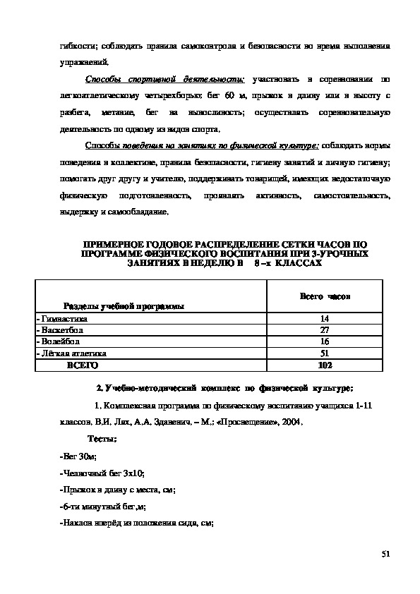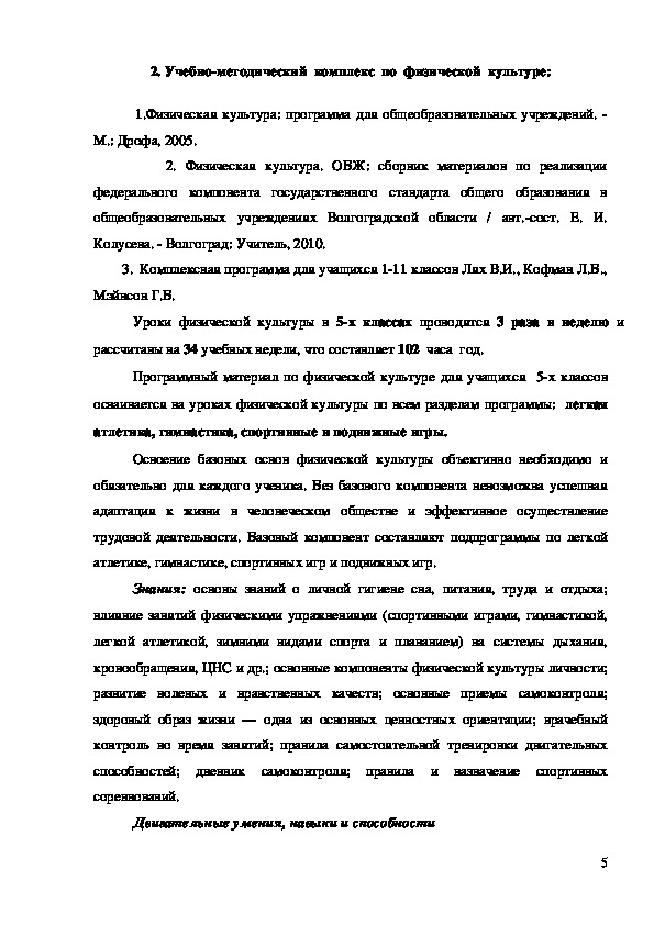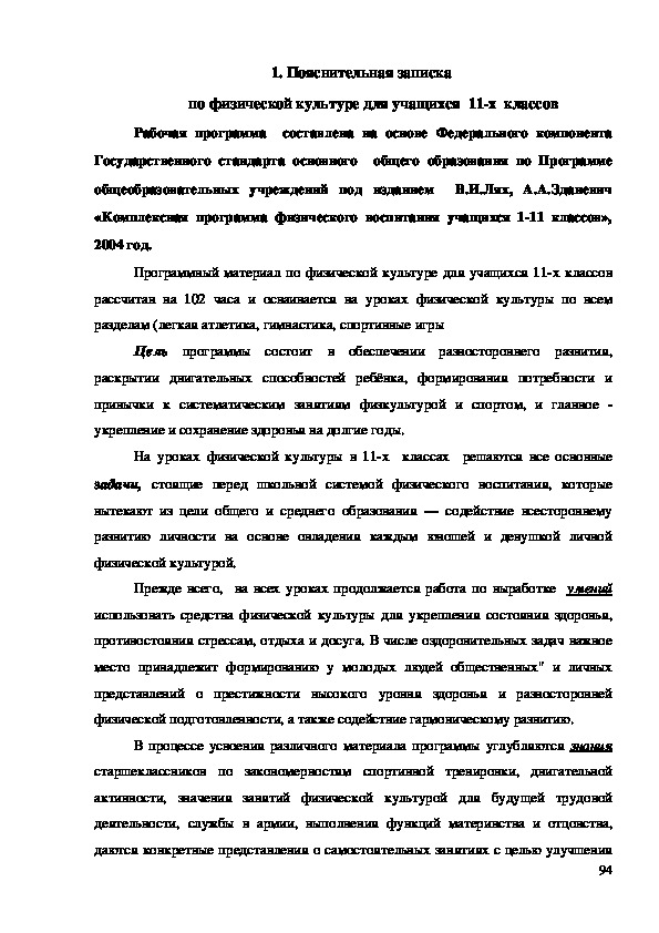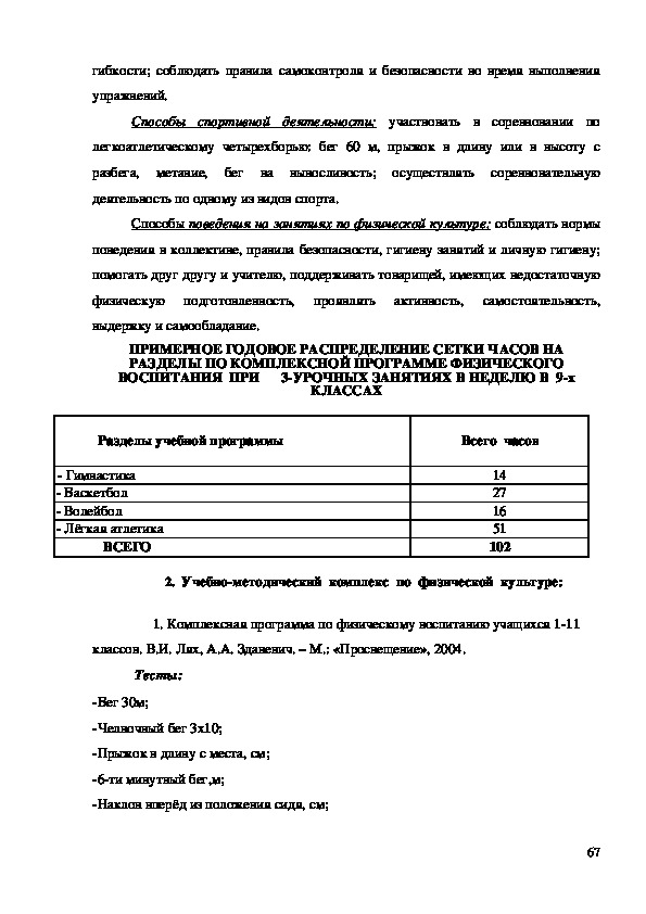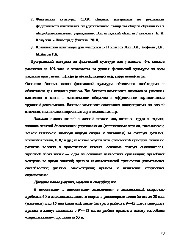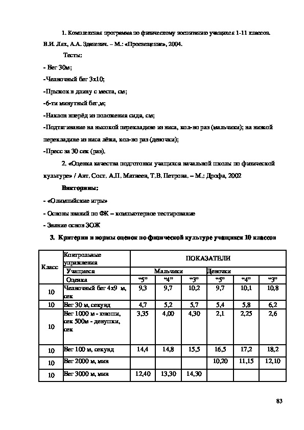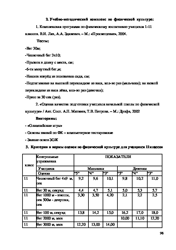 «Комплексная программа физического воспитания учащихся 111 классов»,